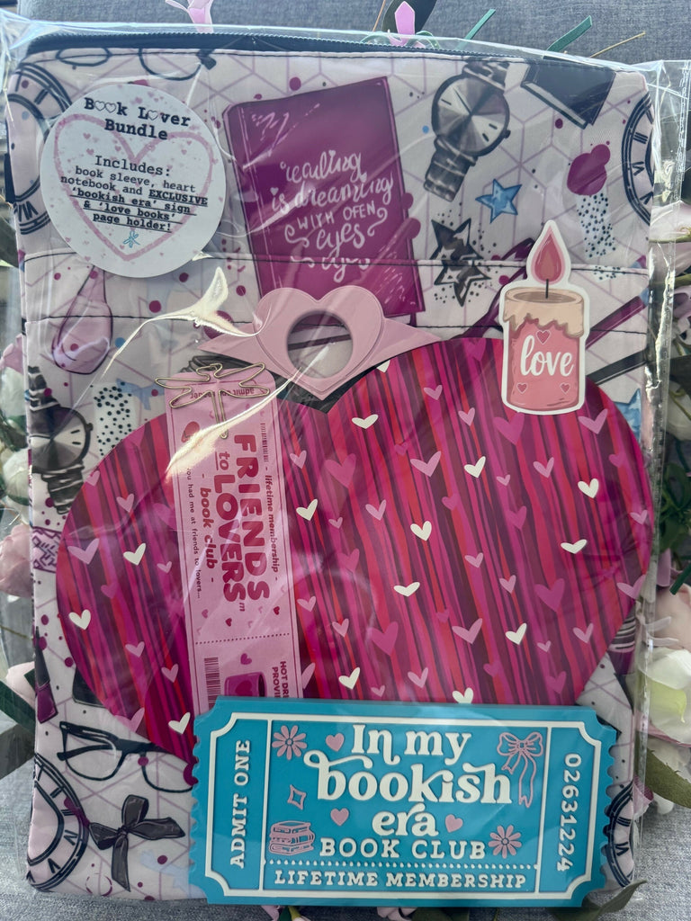 Book Lover Bundle: Includes a book sleeve to protect your book from wear and tear along with bookmarks, stickers and bookish accessories. Includes an EXCLUSIVE Bookish Era shelf sign and an EXCLUSIVE Book Lover page holder, not available for individual sale (retail of Exclusives $25). Free download available with purchase. More colours/styles may be available in store.