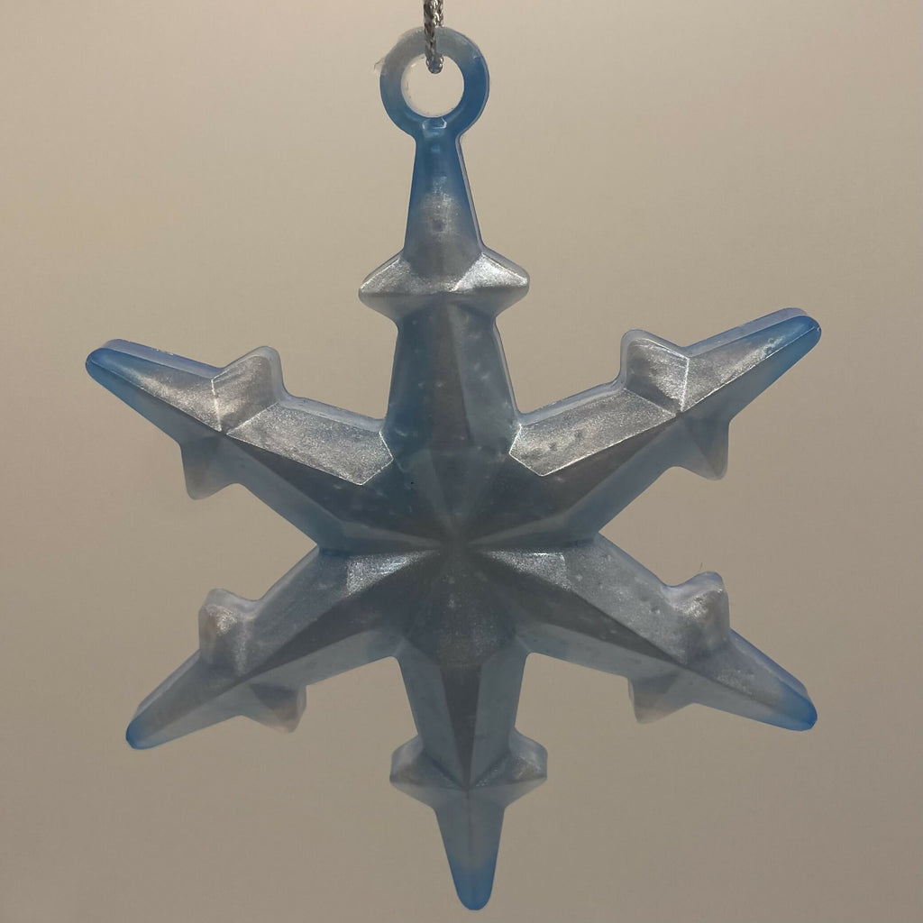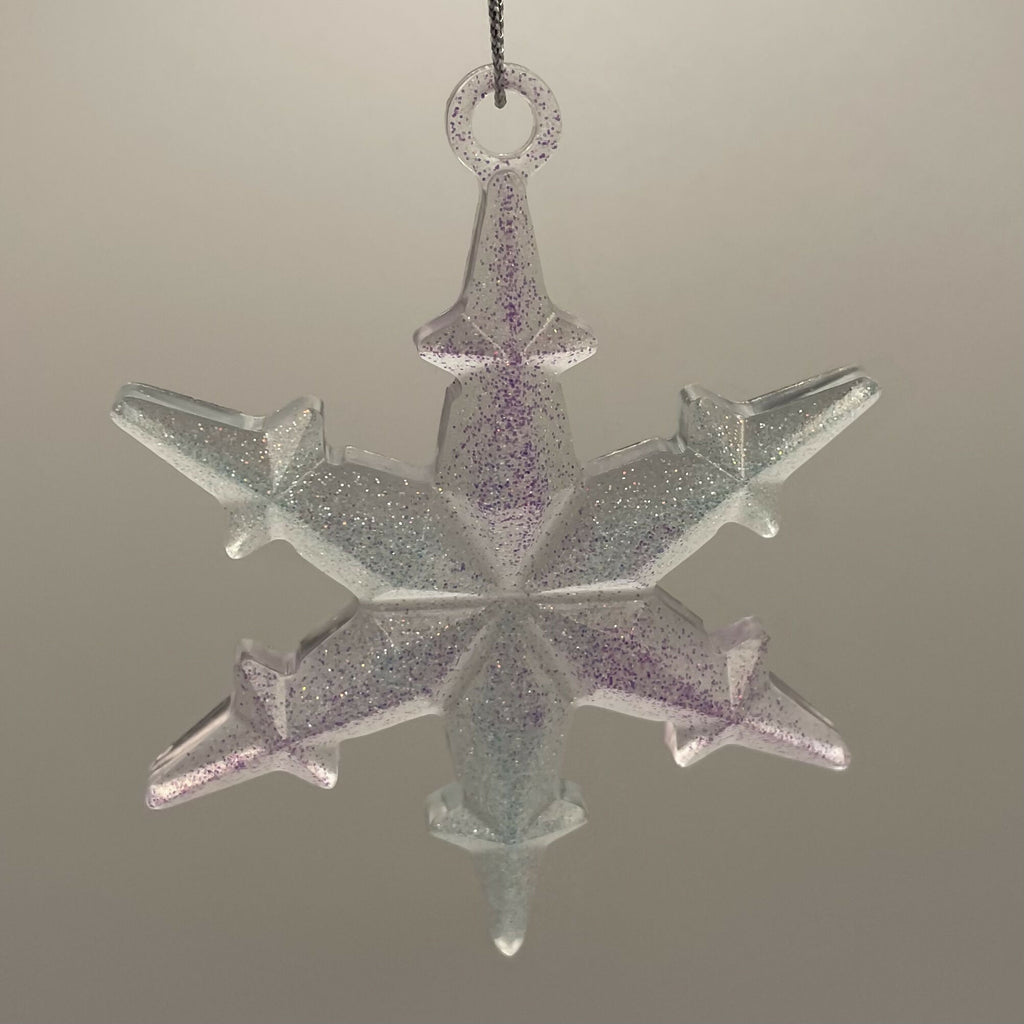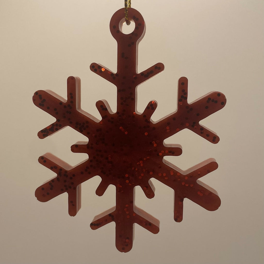 This resin epoxy snowflake ornament features a delicate design, perfect for adding a touch of winter elegance to your holiday décor.  This item comes in a variety of colours and shapes.