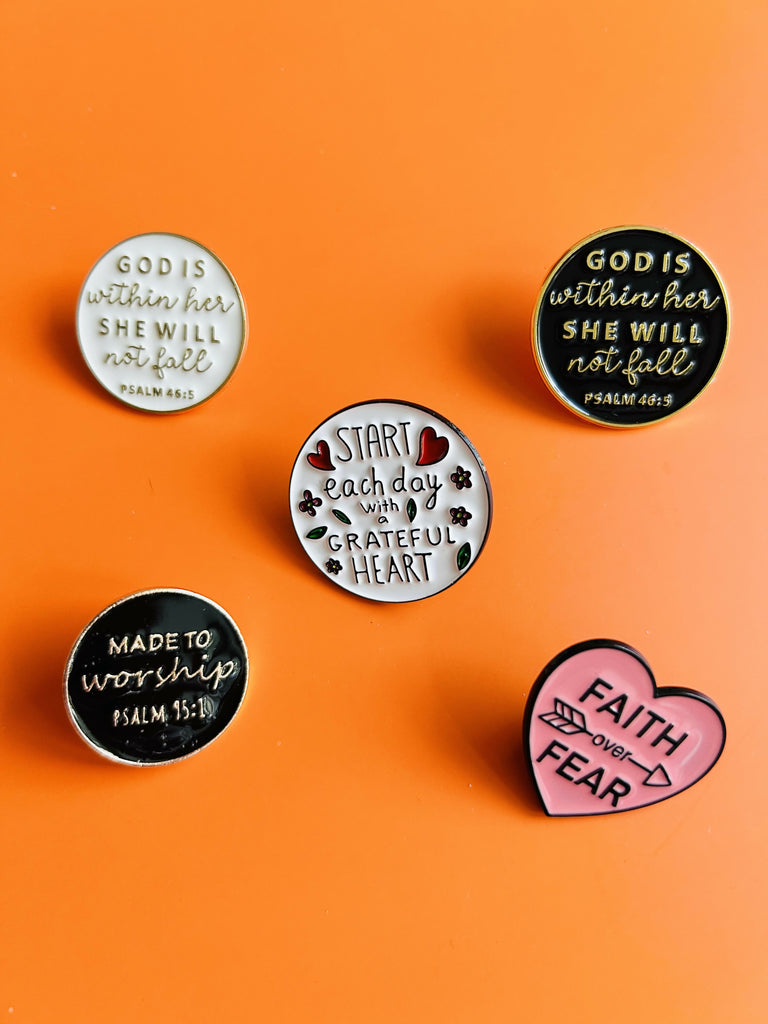 These stylish enamel and metal pins are the perfect way to accessorize your outfit. Each shares a powerful message, and serves as a great reminder of faith.