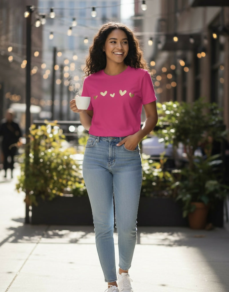 This Valentine’s, we’re adding dimension to a classic. Our new Puffy Gold Foil Heart tee features a stunning 3D texture that catches the light from every angle. It’s the perfect blend of high-end shimmer and effortless style.