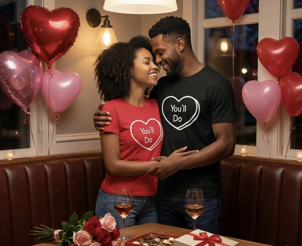 "Because 'soulmate' is a bit much, isn't it? Give them the gift of honesty this Valentine’s Day. The 'You’ll Do' tee—for the sarcastic couple that knows exactly what they’ve gotten themselves into and love each other anyway!