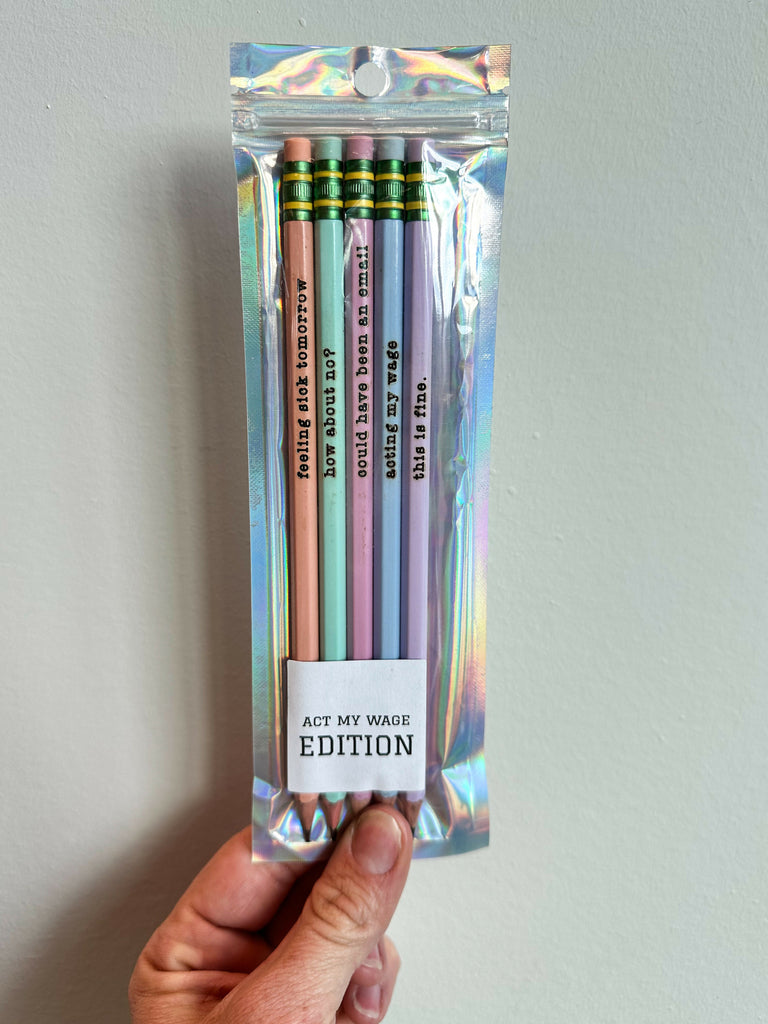Each pencil is permanently engraved (no peeling, no fading) with themed phrases that make perfect gifts, desk upgrades, or small treats for yourself.