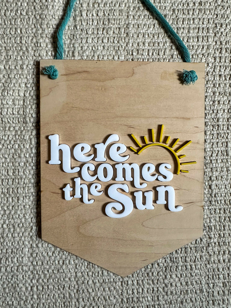 Bring a touch of charm, warmth, and whimsy to any room with our maple wood pennant flag wall decor. Each piece is laser engraved into premium maple plywood, finished with raised 3D acrylic details for a beautiful pop of dimension, and completed with a soft macramé rope hanger for easy display.