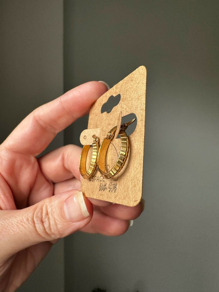 These edgy hoops measure 20mm and are made with 18k gold coated stainless steel.