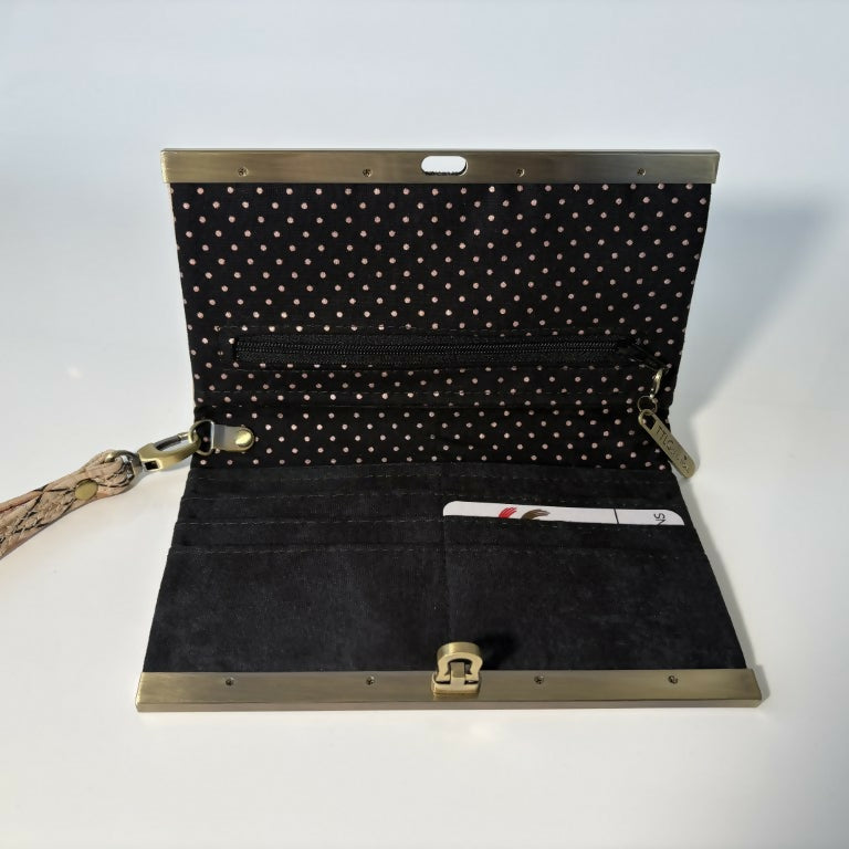 The Diva Cork Wallet combines the classic Diva design with the sustainable elegance of cork. It’s a full-size wallet that holds everything you need, with the added bonus of being crafted from eco-conscious materials. Beautiful on its own and effortlessly functional, it transitions from bag to wrist with ease.